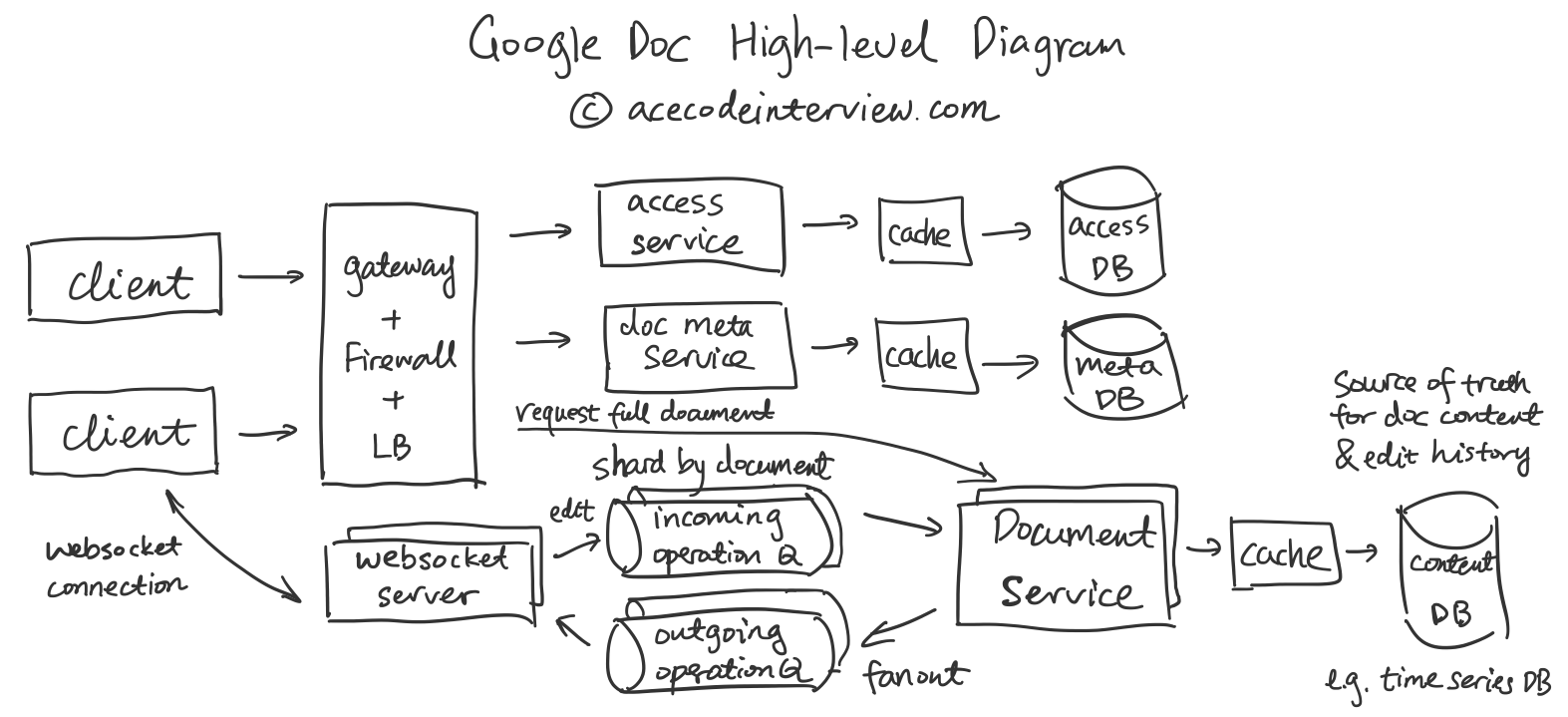 为了实现 Google Doc 的规模,我们就需要引入队列 (Queue) 来确保客户端和服务器端的沟通是有序的。理由如下: