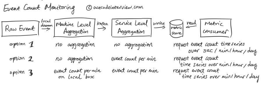 这道题主要考察 Streaming Service 的应用,监控系统作为一个 Streaming Service 的经典实例,牵涉到 Streaming Service 上游的 Publisher 和下游的 Consumer 如何合理配置,来实现监控系统所涉及到的种种功能。