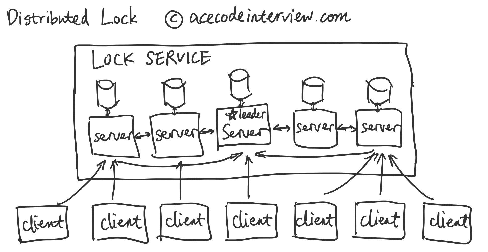 在这里我们要简略介绍一下共识机制。我们对这个共识机制的要求是每一次锁服务的决定需要得到大多数 (Majority) 节点的赞同才能继续。我们可以使用这个共识机制选取一个 Leader,此时大多数的节点已经认可了这个 Leader。此后客户端只需要向这个 Leader 发送获取锁的请求。Leader 在使用二阶段提交 (2-phase commit) 的方法得到大多数节点的认可之后,才会向客户端返回获得锁的确认。这样即使在小部分节点宕机的情况下,锁服务依然可以照常运行。在 Leader 节点宕机之后,我们可以使用前面提到的共识机制来选举新的 Leader,并且依靠大多数节点上的状态备份将原本 Leader 的状态恢复。