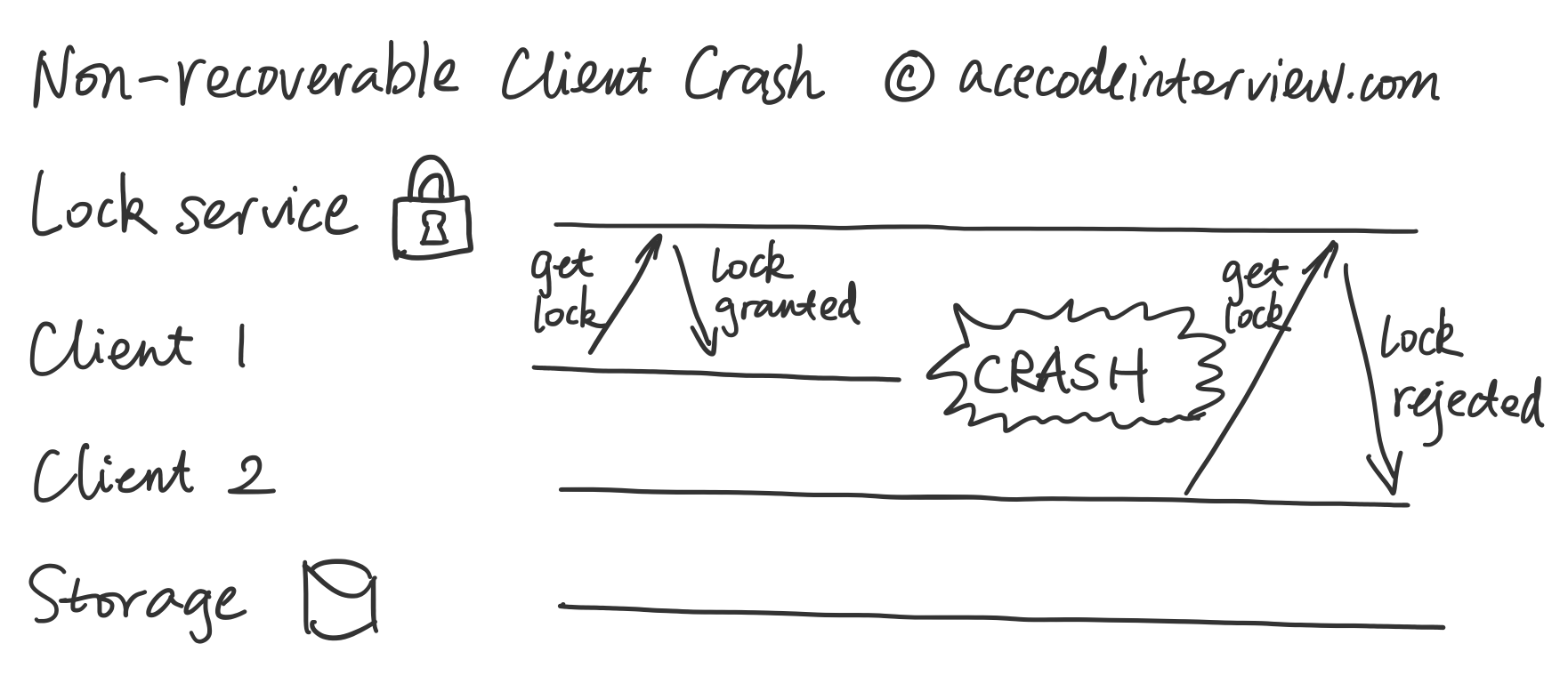 从上图可以看出,一旦客户端 1 宕机,客户端 2 就永远无法拿到锁了,所要进行的运算无法进行,相关的资源无法被修改,造成无法修复的问题。